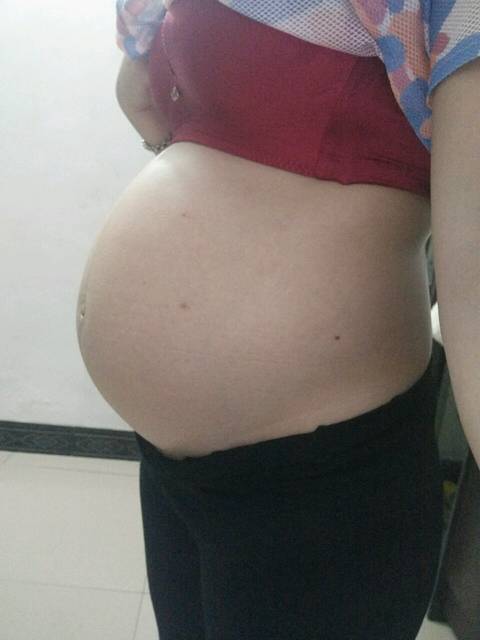 我自己的感觉也是男宝,胎动在晚上的时候比较频繁。肚脐突了出来,肚子还是比较挺的,胎盘在子宫后壁,妊娠线下面很粗,上面几乎没有。